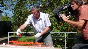Heute nun die finalen Dreharbeiten des SWR in Stuttgart auf der Anlage von Michael Herberger im Königsbau. Die Reaktionen in Berlin und Stuttgart (auch vom Fernsehteam) waren durchweg sehr positiv. In der Sendung -Eisenbahnromantik- auf SWR am 11.12.2011 (3.Advent) um 16.00Uhr wird ein kleiner Beitrag über den Bau des Modells gesendet.
